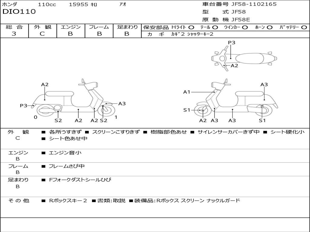 | Номер рамы / VIN | JF58-1102165 |