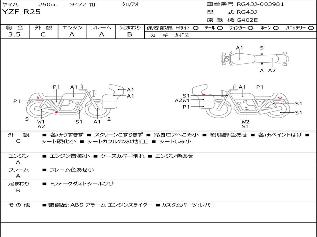 | Номер рамы / VIN | RG43J-003981 |