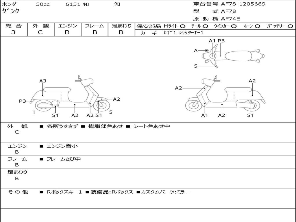 | Номер рамы / VIN | AF78-1205669 |