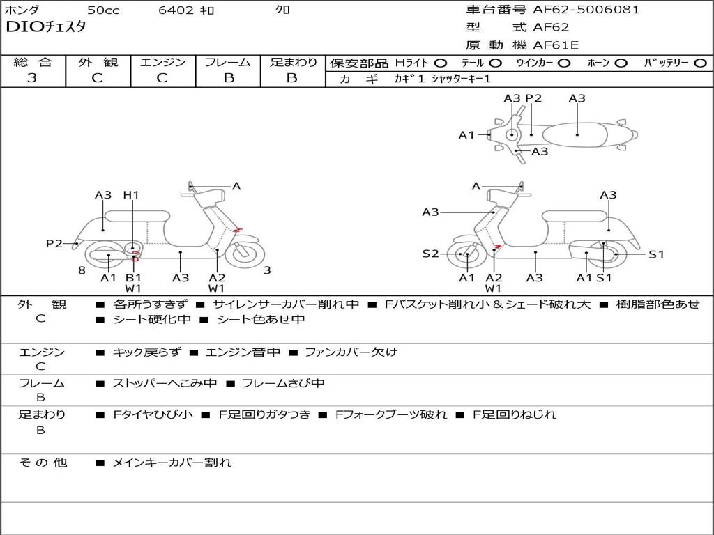 | Номер рамы / VIN | AF62-5006081 |