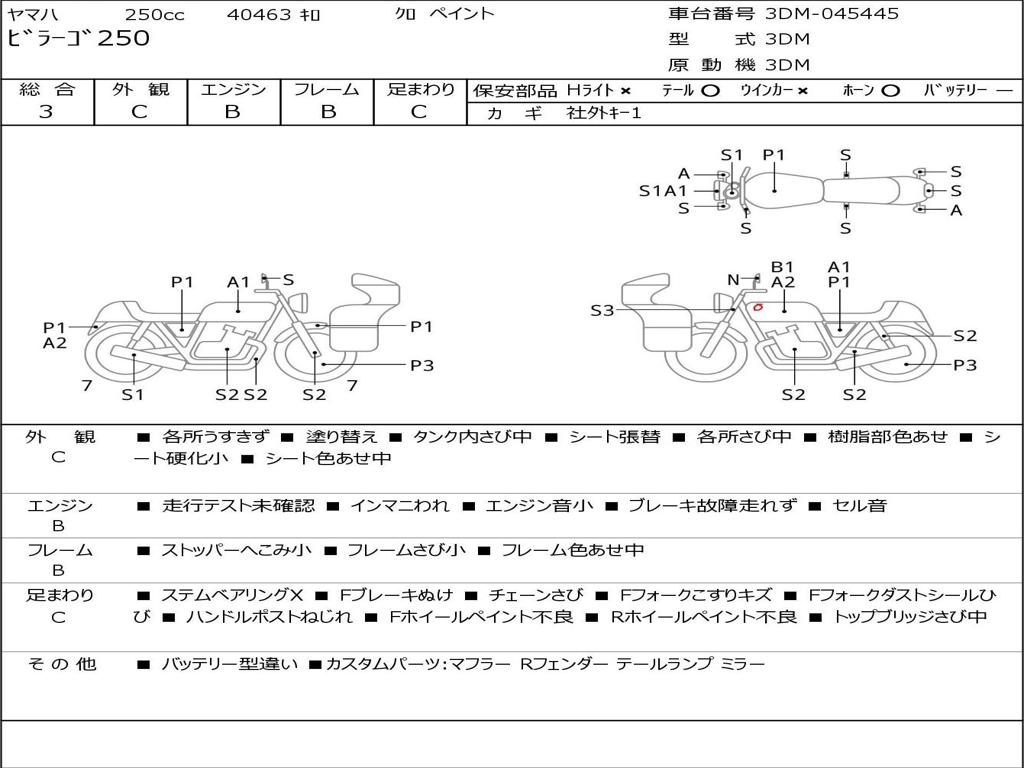 | Номер рамы / VIN | 3DM-045445 |
