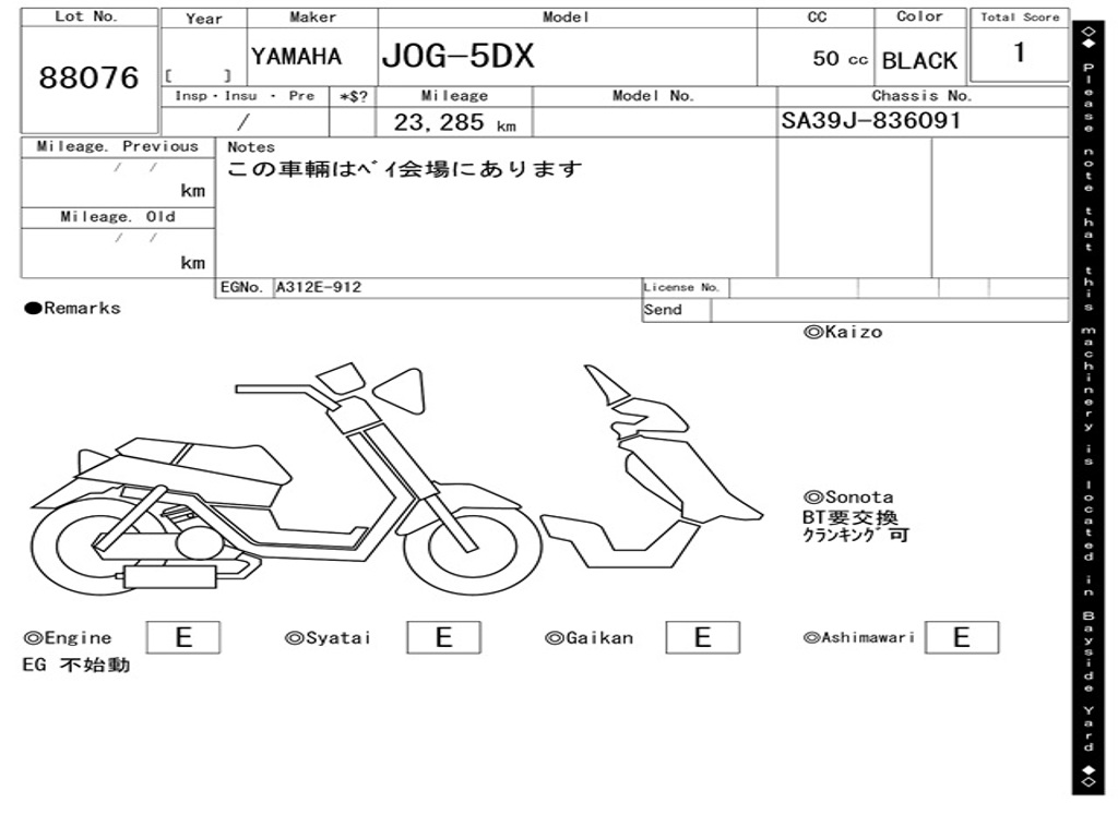 | Номер рамы / VIN | SA39J-836091 |