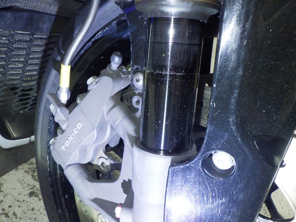 | внешняя часть вилки | царапины, следы коррозии, потек масла <много>, неисправен сальник |