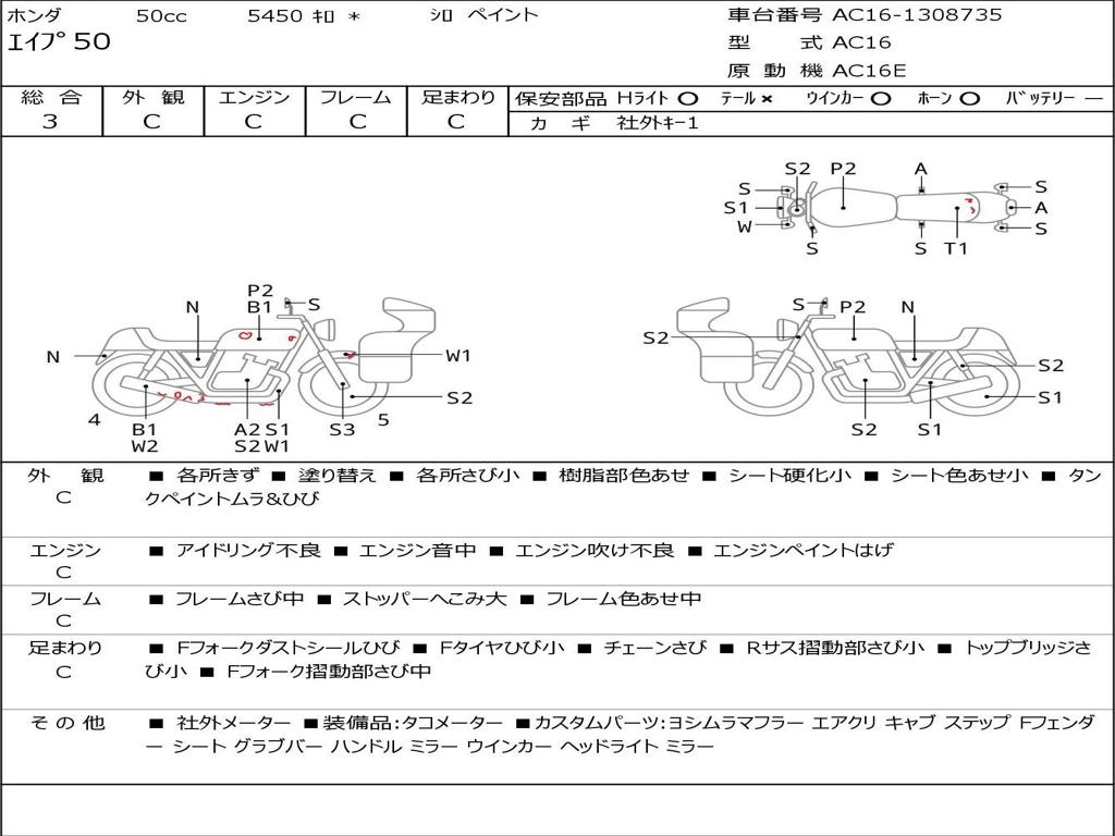 | Номер рамы / VIN | AC16-1308735 |