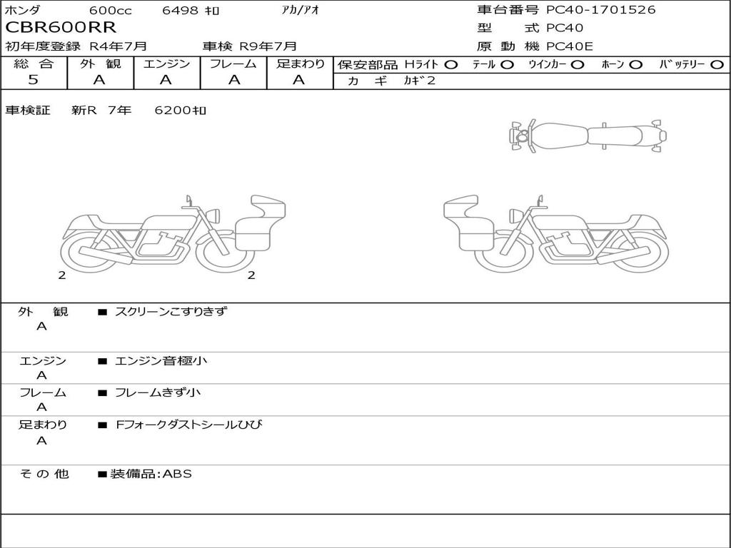 Номер рамы / VIN | PC40-1701526 |