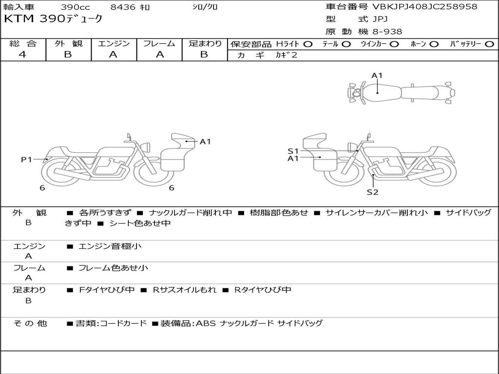 Номер рамы / VIN | VBKJPJ408JC258958 |