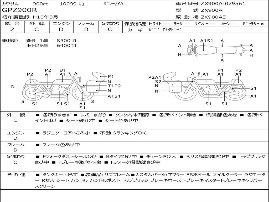 Номер рамы / VIN | ZX900A-079561 |