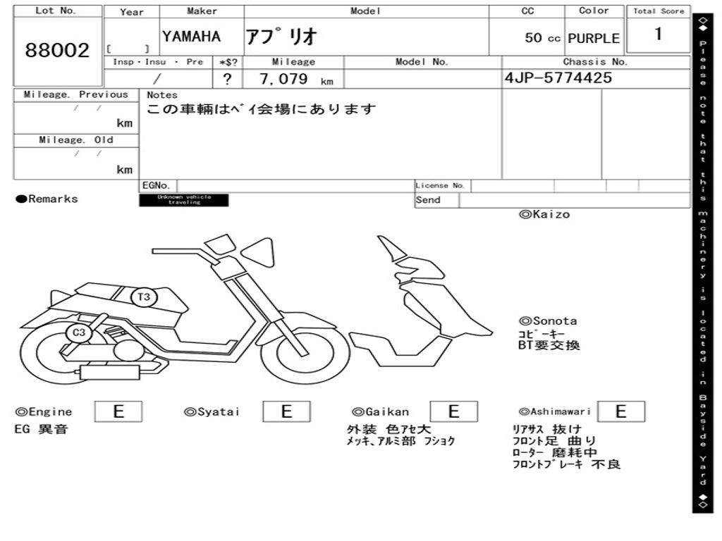 Номер рамы / VIN | 4JP-5774425 |