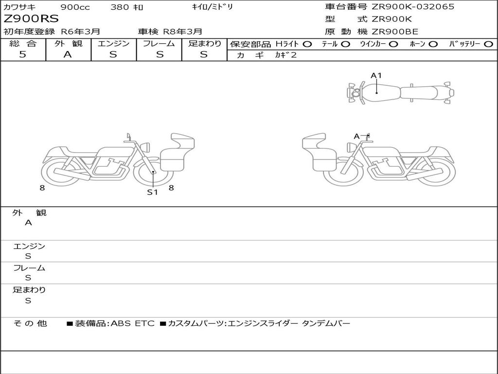 | Номер рамы / VIN | ZR900K-032065 |