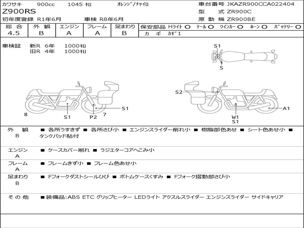 | Номер рамы / VIN | JKAZR900CCA022404 |