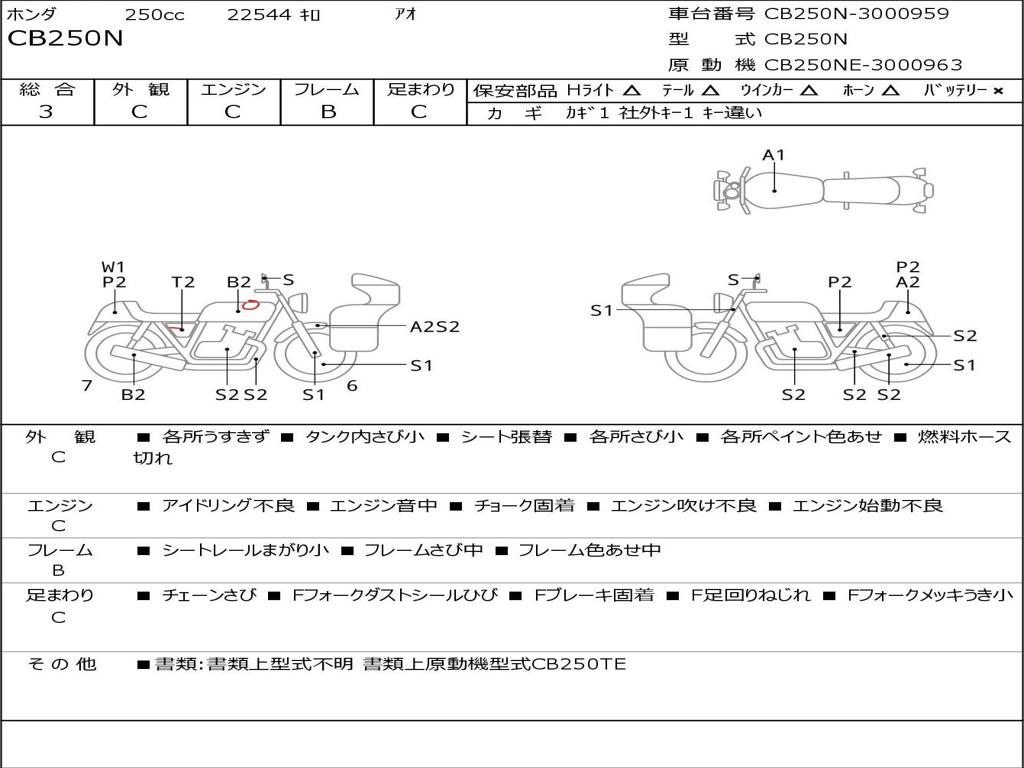 | Номер рамы / VIN | CB250N-3000959 |