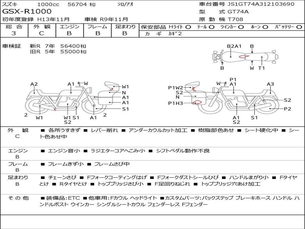 | Номер рамы / VIN | JS1GT74A312103690 |
