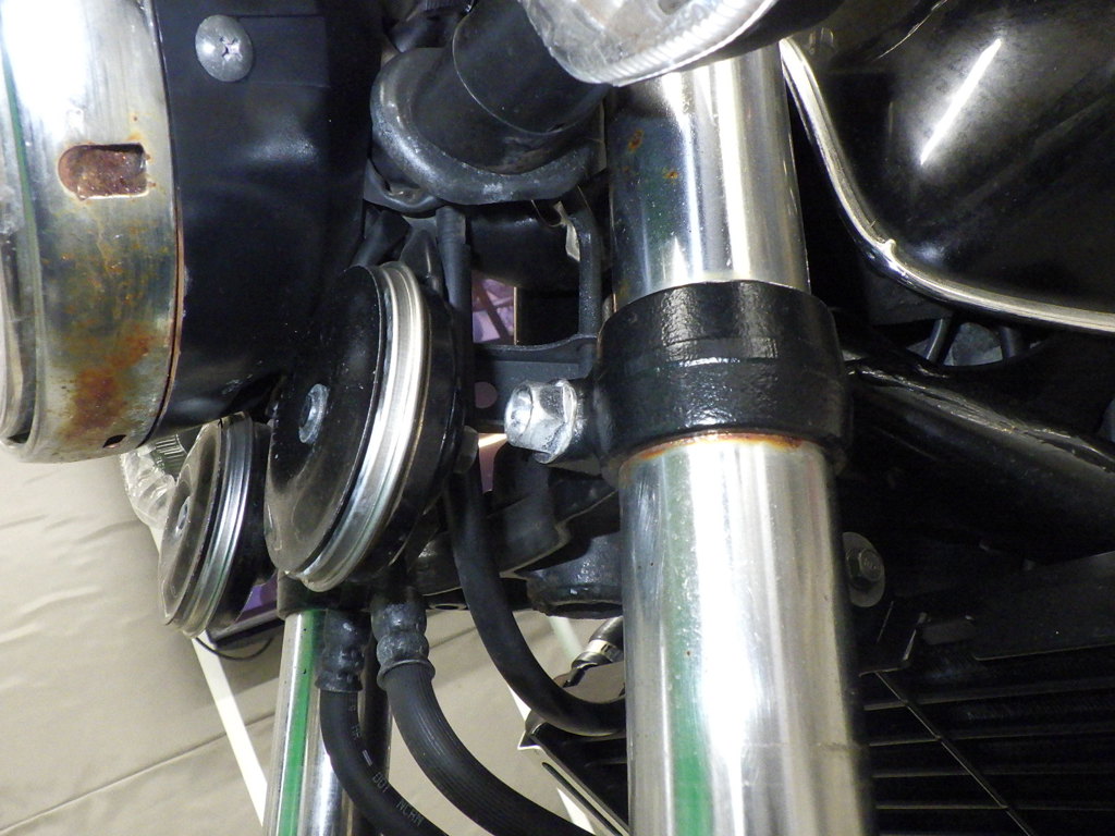 | внешняя часть вилки | следы коррозии <много>, потек масла |