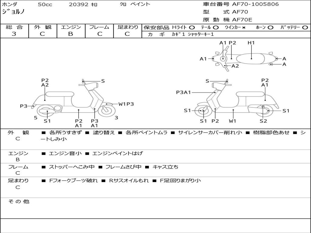 | Номер рамы / VIN | AF70-1005806 |