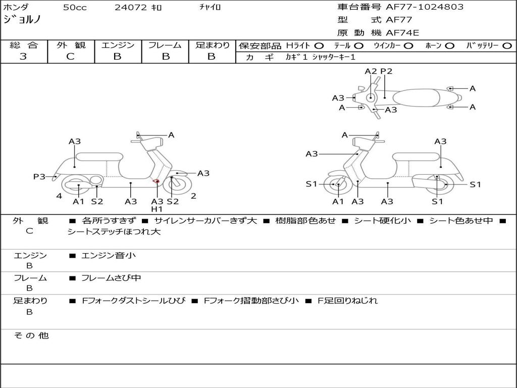 | Номер рамы / VIN | AF77-1024803 |