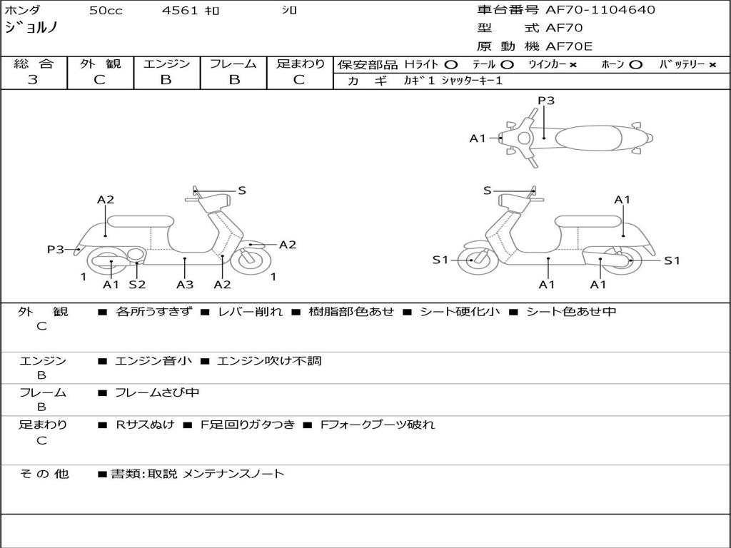 | Номер рамы / VIN | AF70-1104640 |