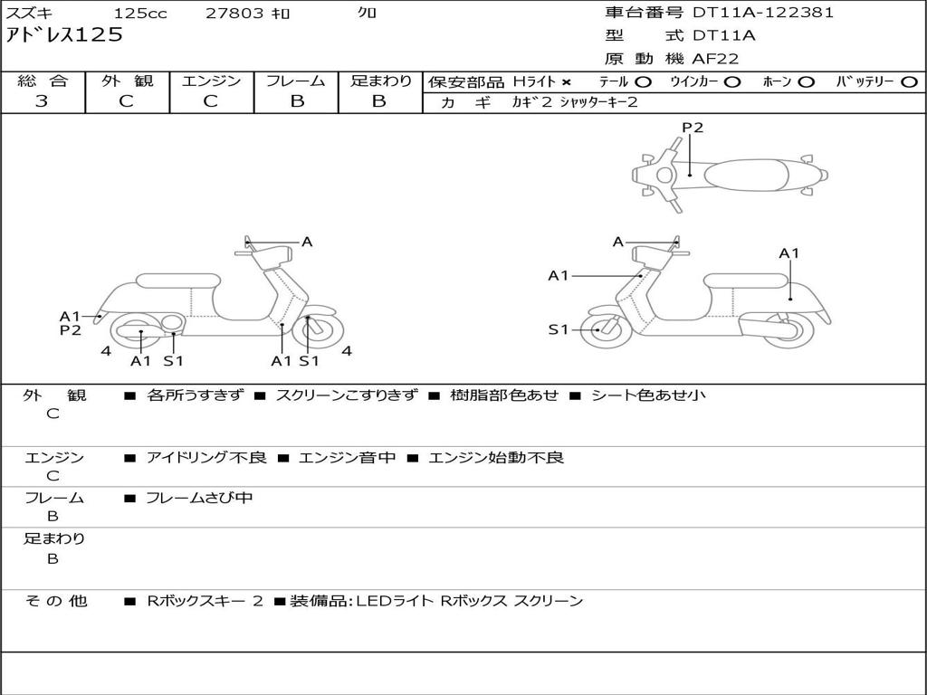 | Номер рамы / VIN | DT11A-122381 |