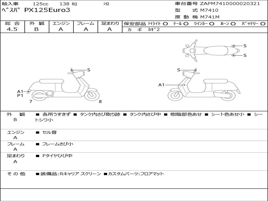 | Номер рамы / VIN | ZAPM7410000020321 |