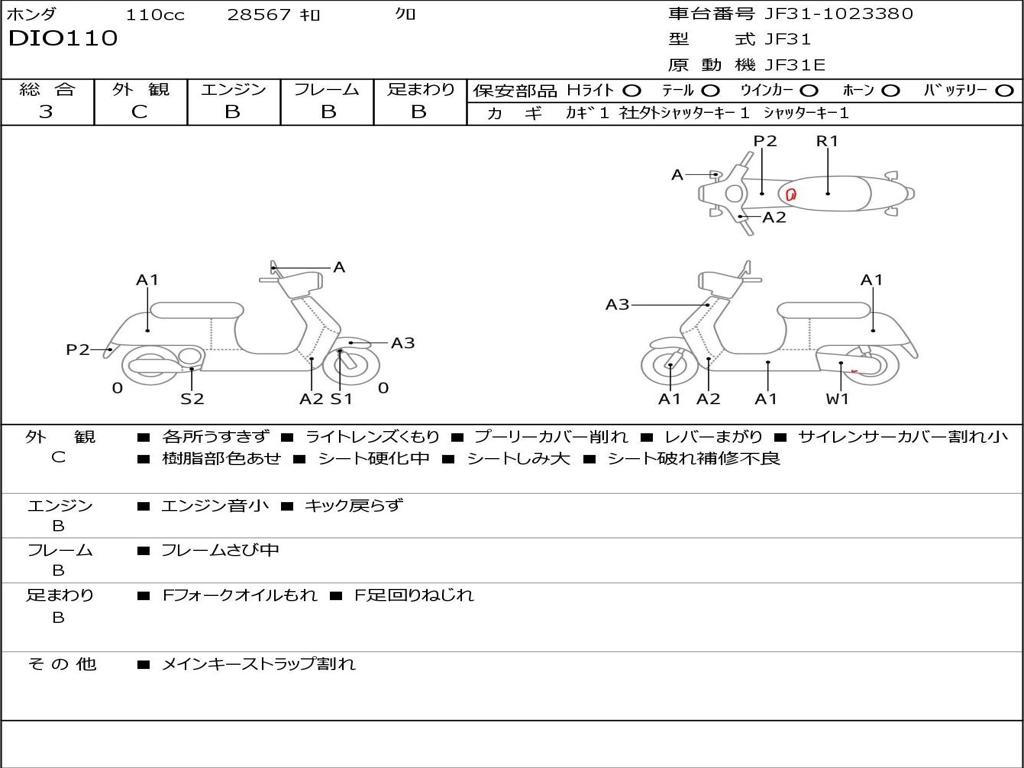 | Номер рамы / VIN | JF31-1023380 |