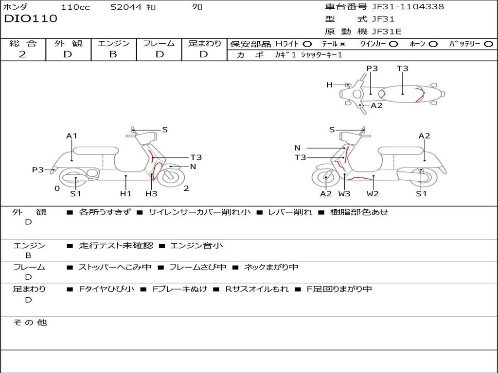 | Номер рамы / VIN | JF31-1104338 |