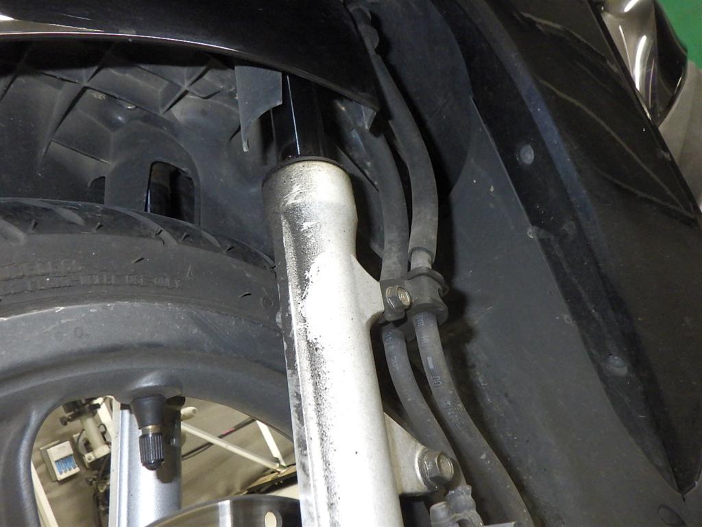 | внешняя часть вилки | следы коррозии, потек масла <много> |
