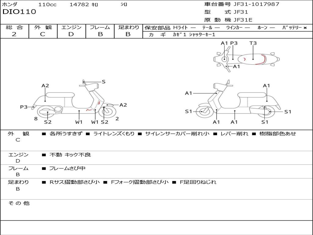 | Номер рамы / VIN | JF31-1017987 |