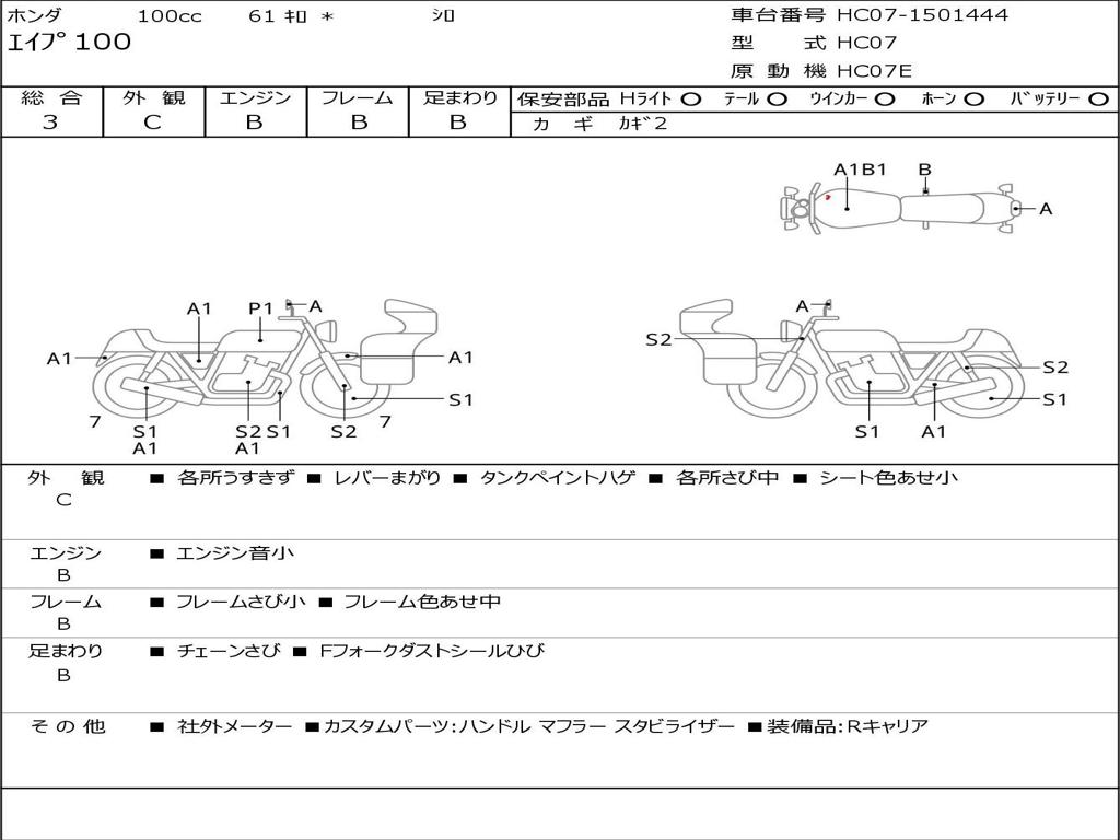 | Номер рамы / VIN | HC07-1501444 |