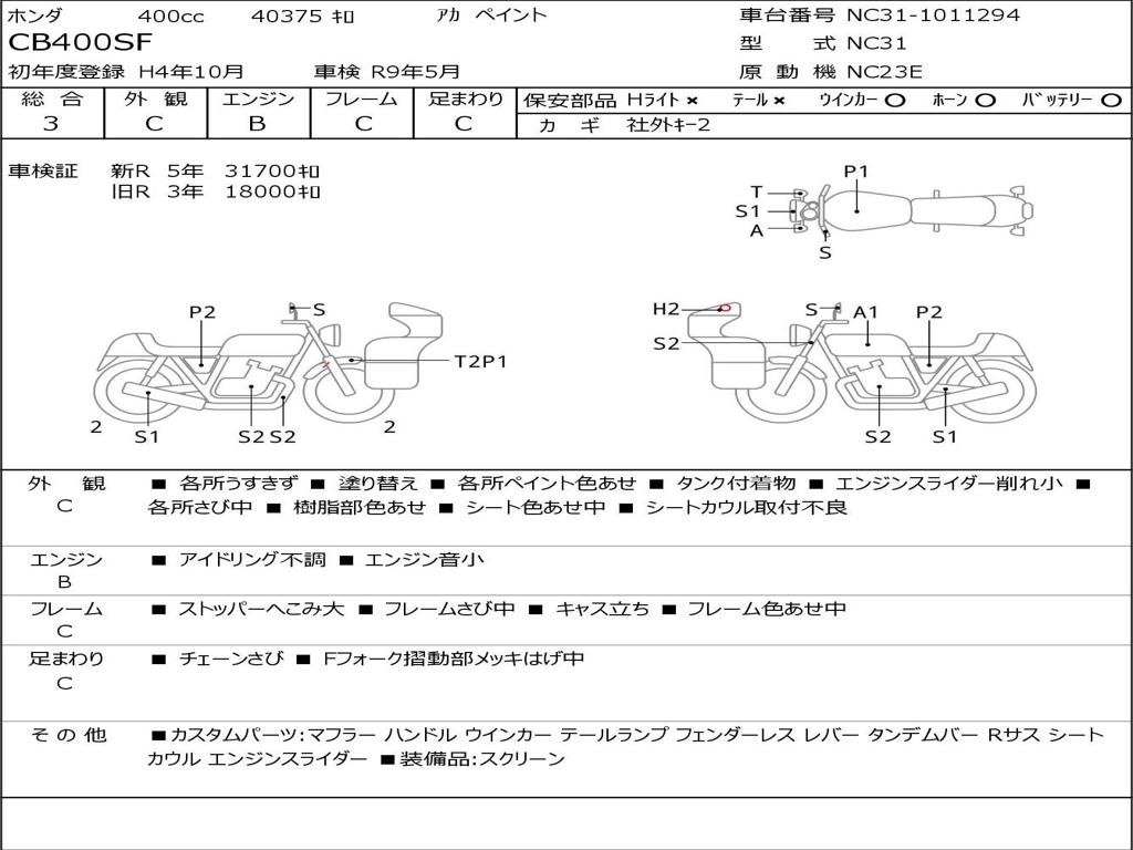 | Номер рамы / VIN | NC31-1011294 |