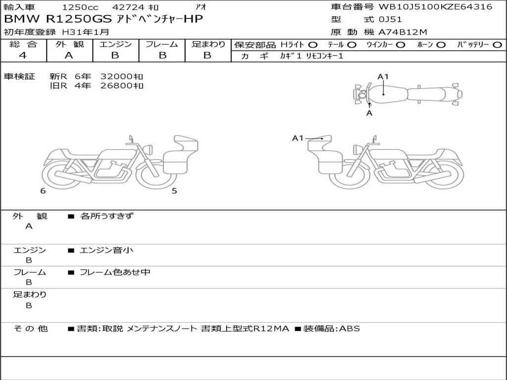 | Номер рамы / VIN | WB10J5100KZE64316 |