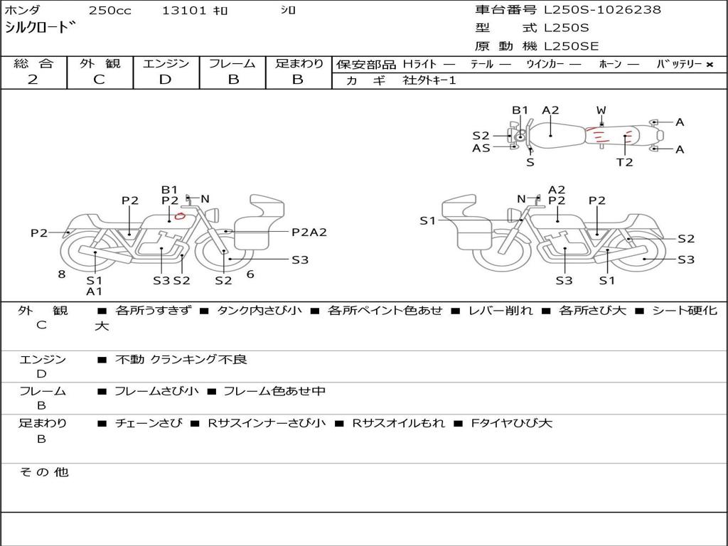 | Номер рамы / VIN | L250S-1026238 |