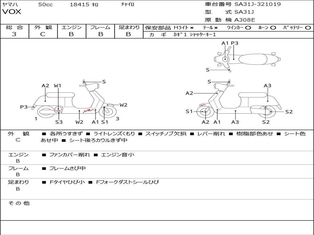 | Номер рамы / VIN | SA31J-321019 |
