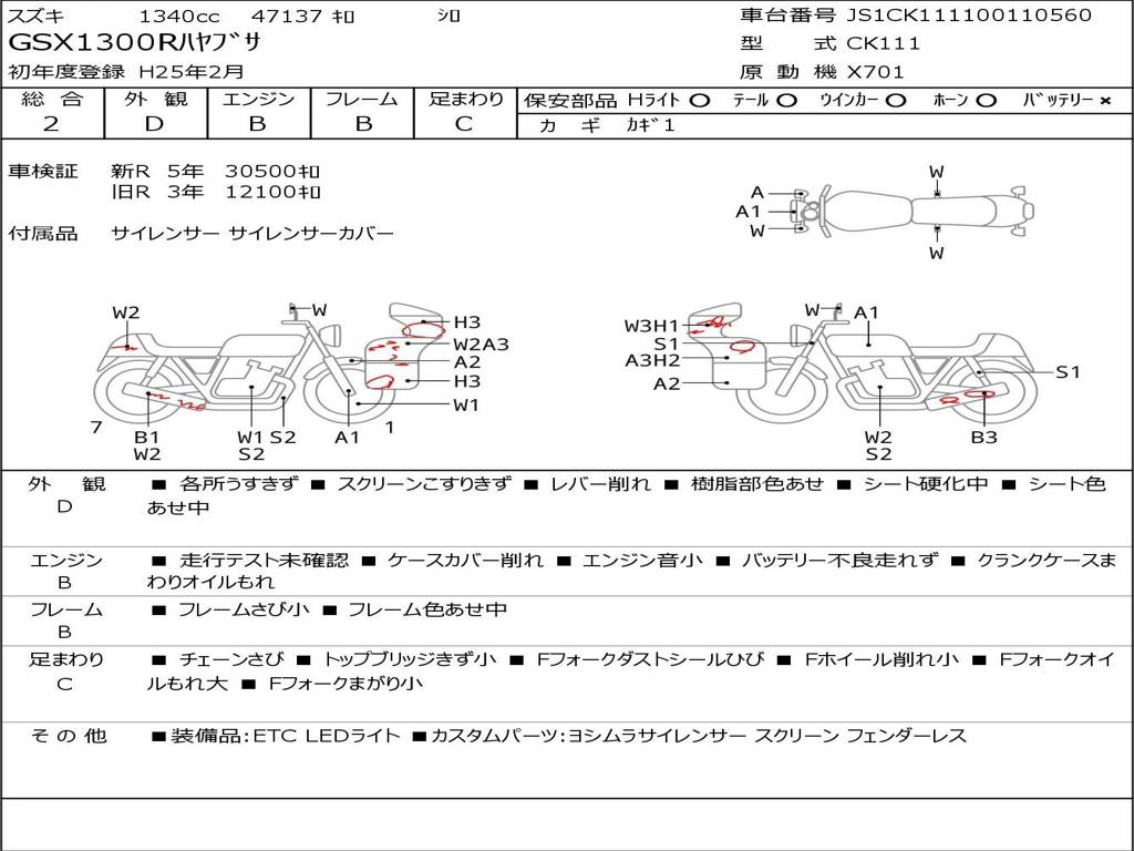 | Номер рамы / VIN | JS1CK111100110560 |