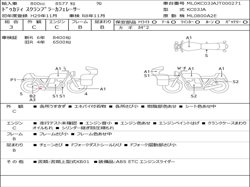 | Номер рамы / VIN | ML0KC03JAJT000271 |