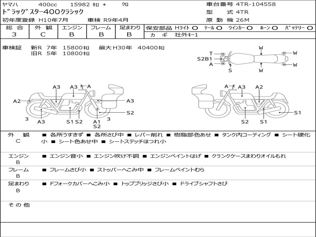 | Номер рамы / VIN | 4TR-104558 |