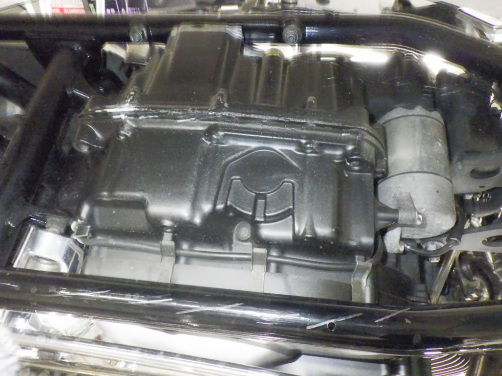 | потек масла | снизу <много> |