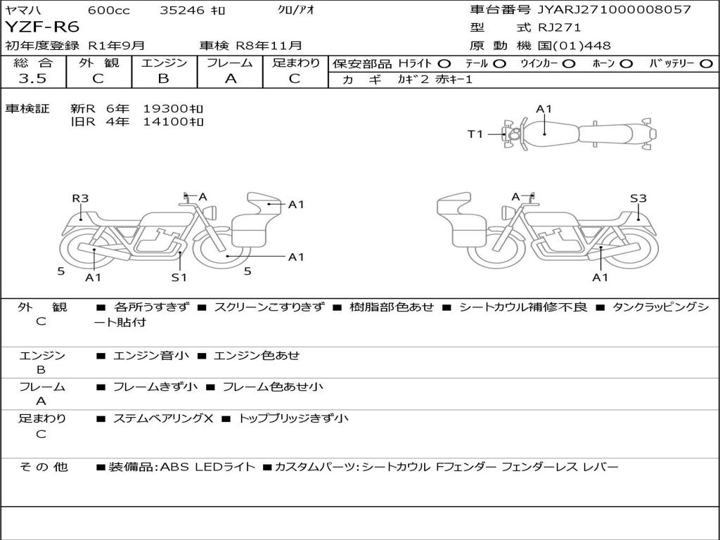 | Номер рамы / VIN | JYARJ271000008057 |