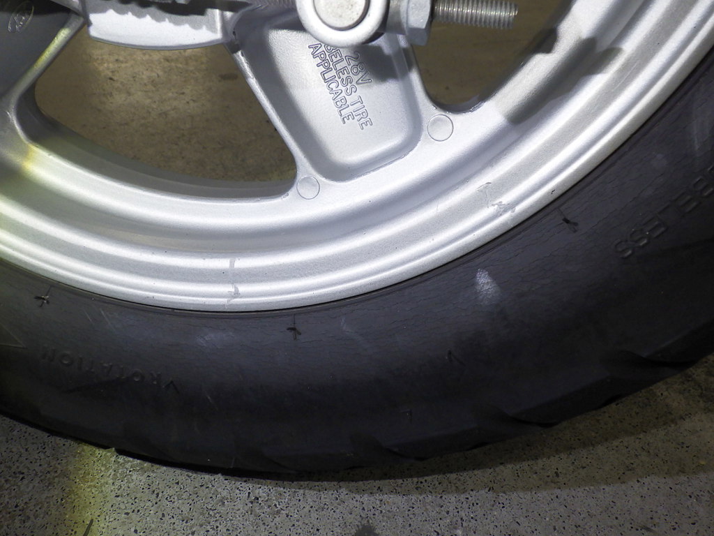 | шина | трещины, требует замены |