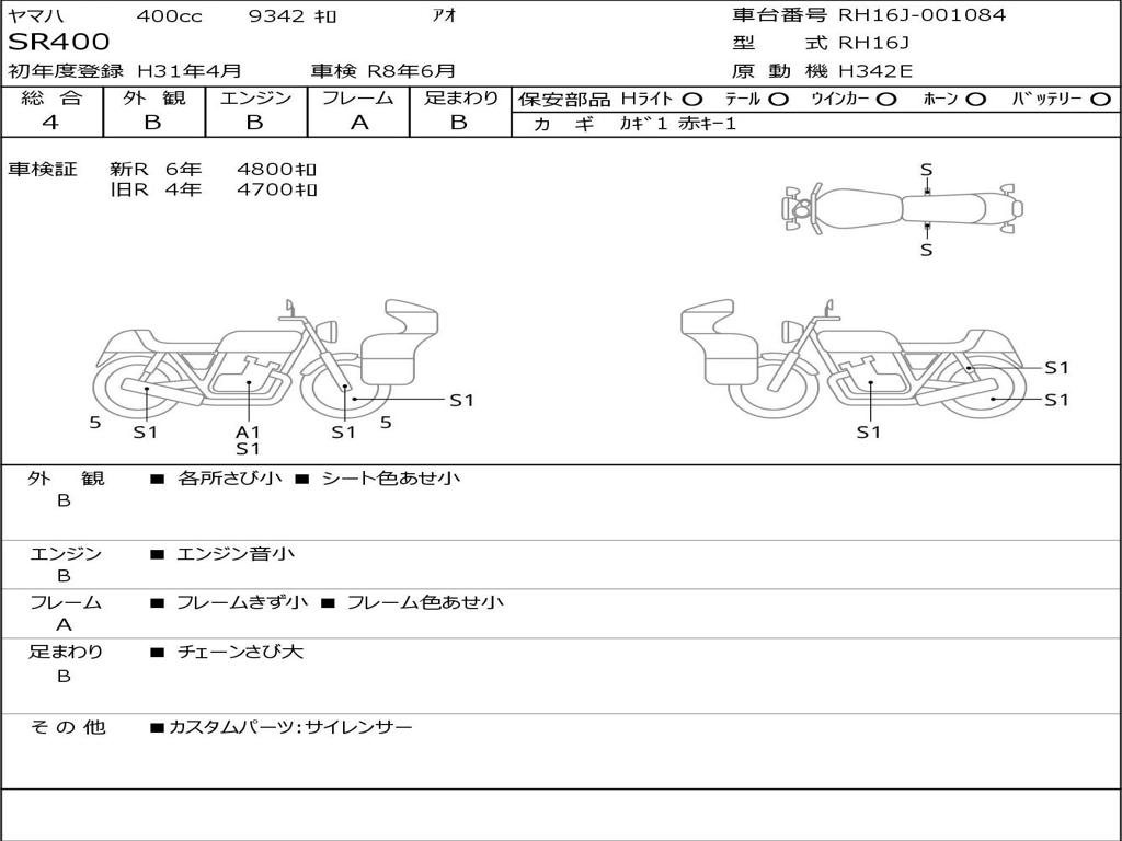 | Номер рамы / VIN | RH16J-001084 |