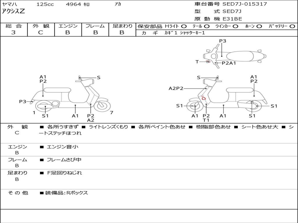 | Номер рамы / VIN | SED7J-015317 |