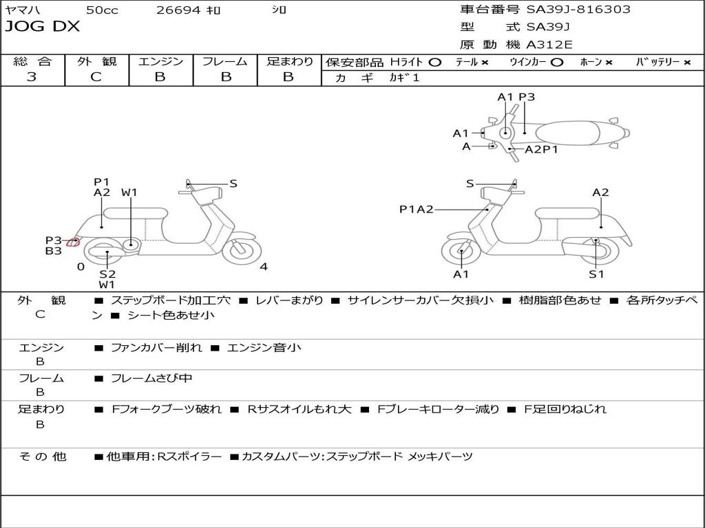 | Номер рамы / VIN | SA39J-816303 |