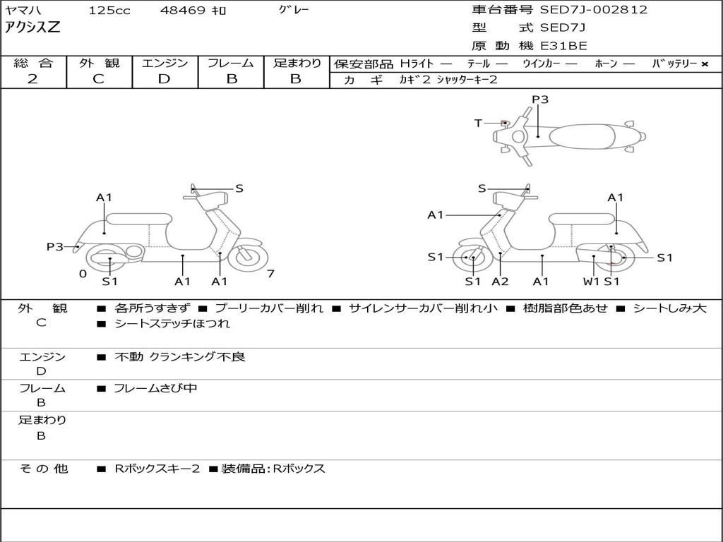 | Номер рамы / VIN | SED7J-002812 |
