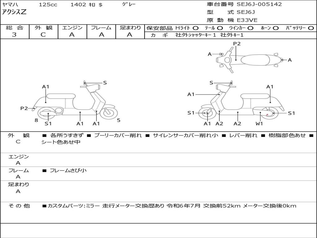 | Номер рамы / VIN | SEJ6J-005142 |