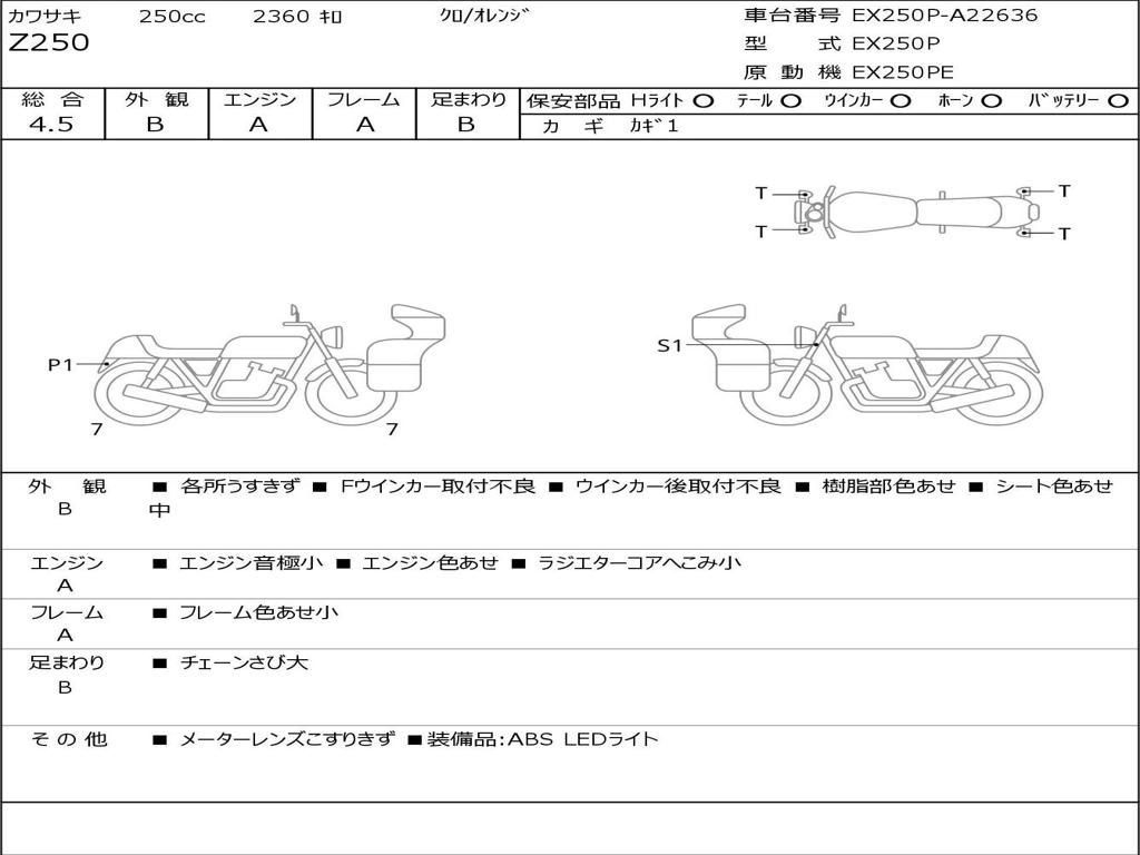 | Номер рамы / VIN | EX250P-A22636 |