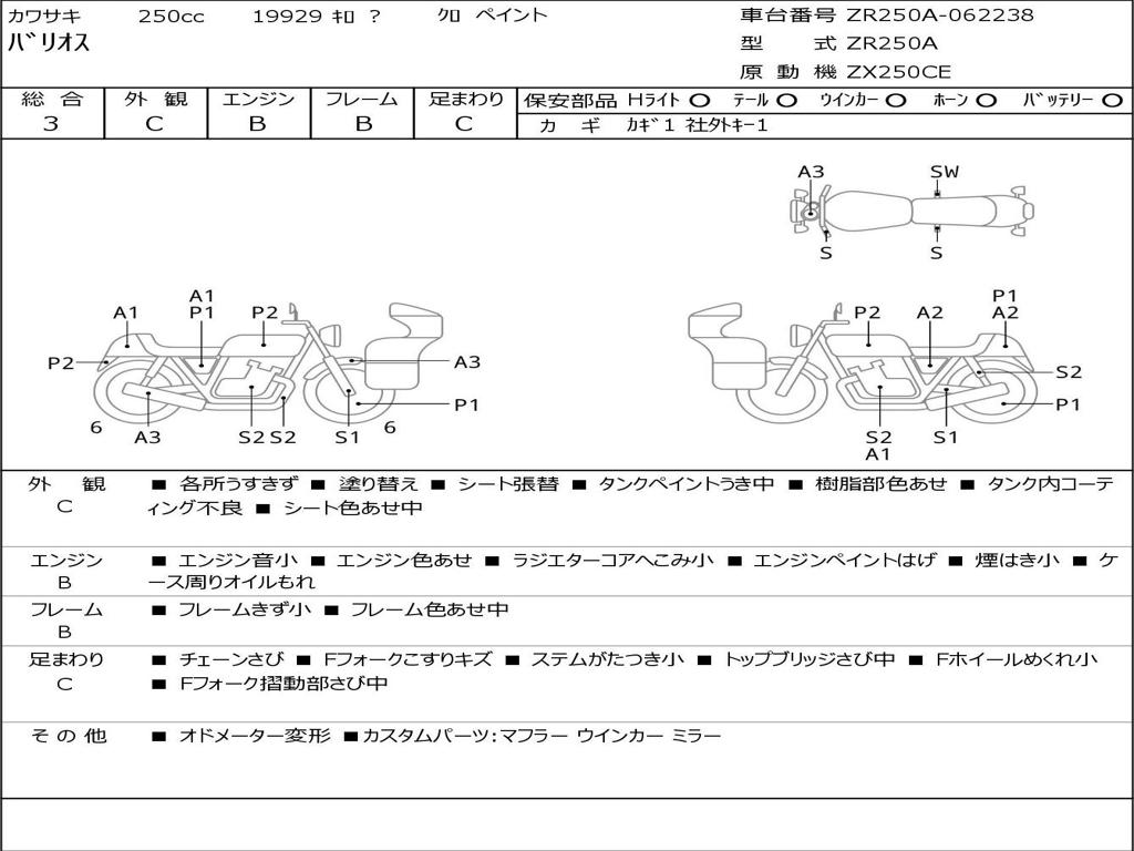 | Номер рамы / VIN | ZR250A-062238 |