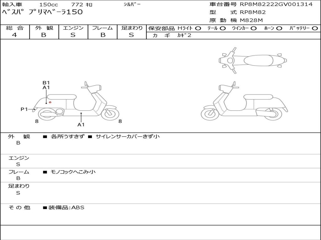 | Номер рамы / VIN | RP8M82222GV001314 |