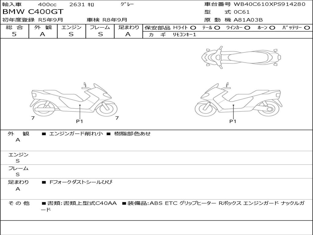 | Номер рамы / VIN | WB40C610XPS914280 |
