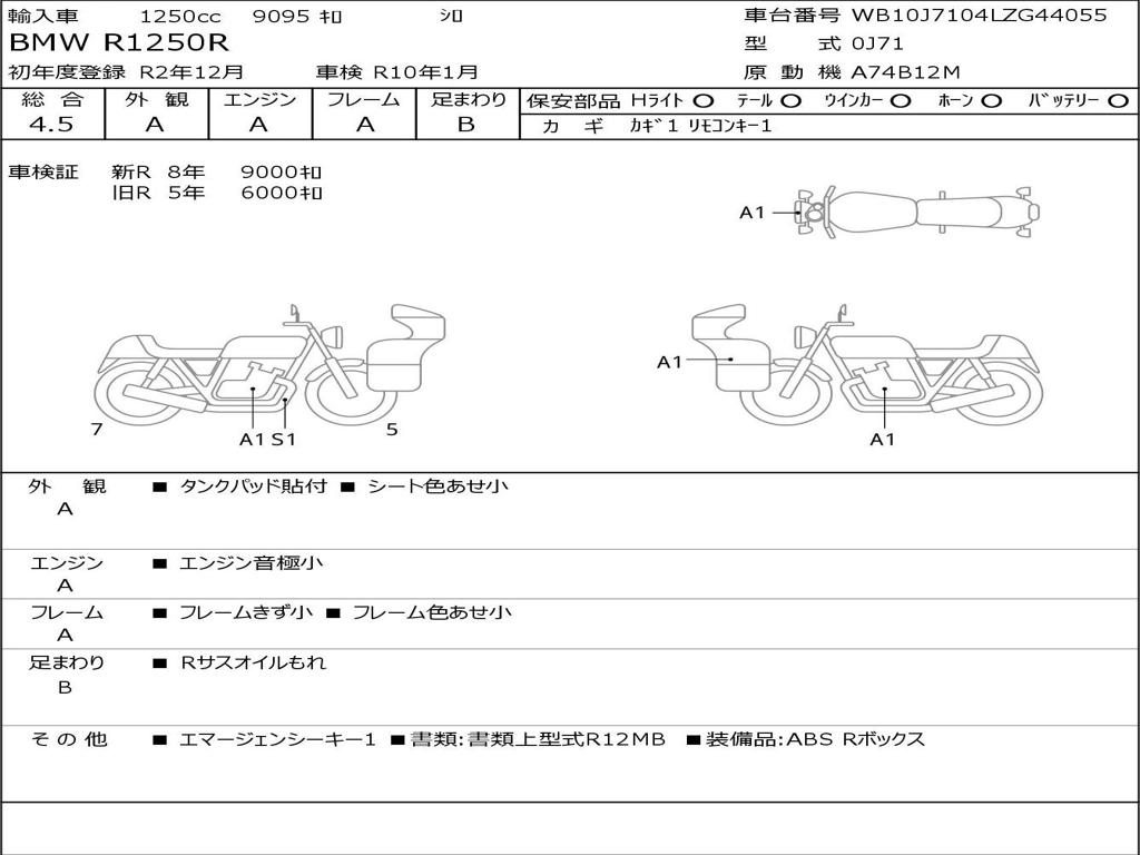 | Номер рамы / VIN | WB10J7104LZG44055 |