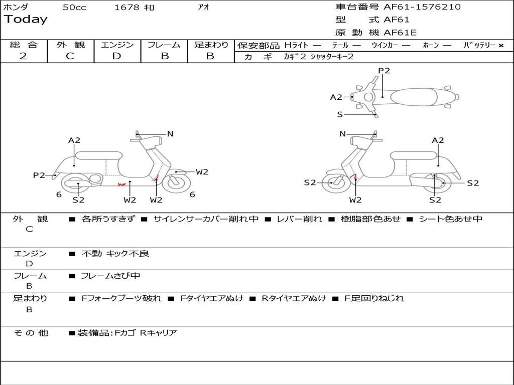 | Номер рамы / VIN | AF61-1576210 |