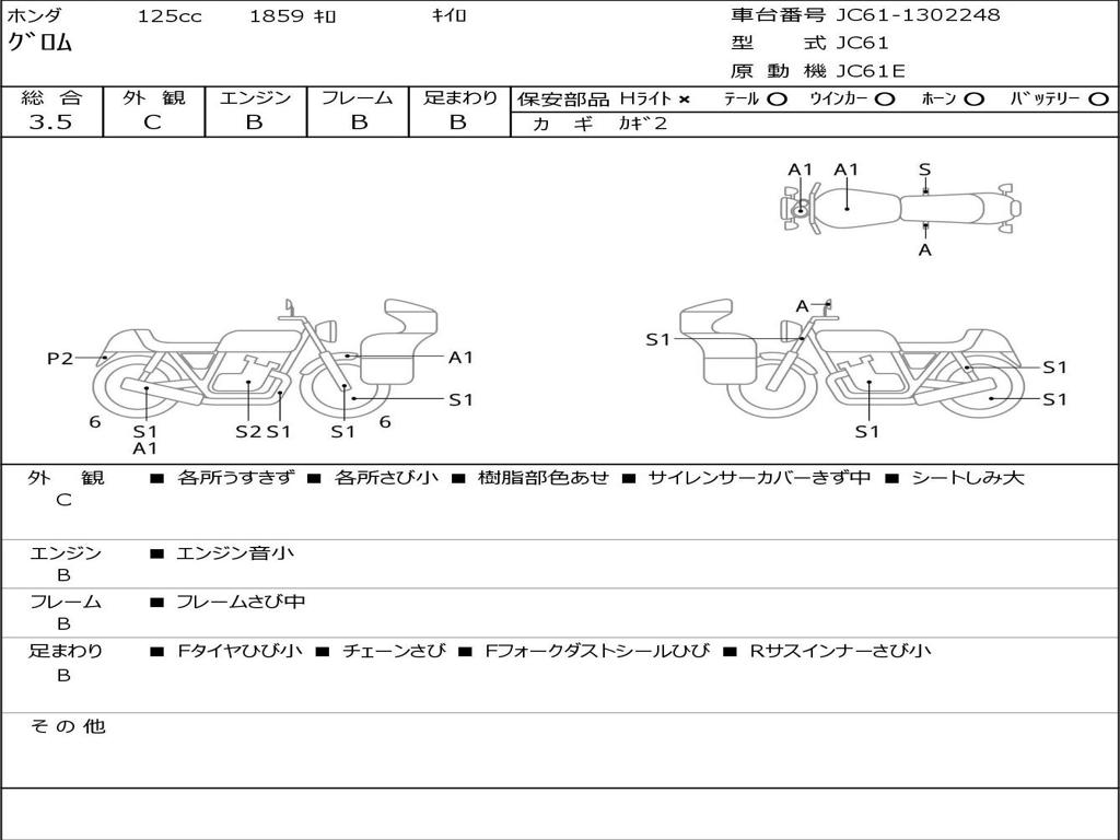 | Номер рамы / VIN | JC61-1302248 |
