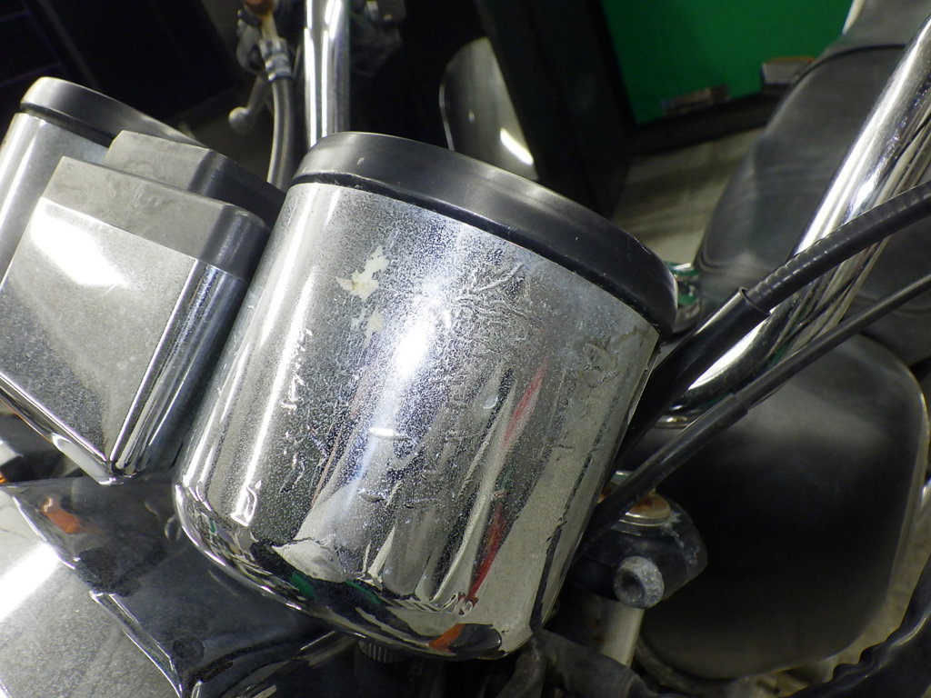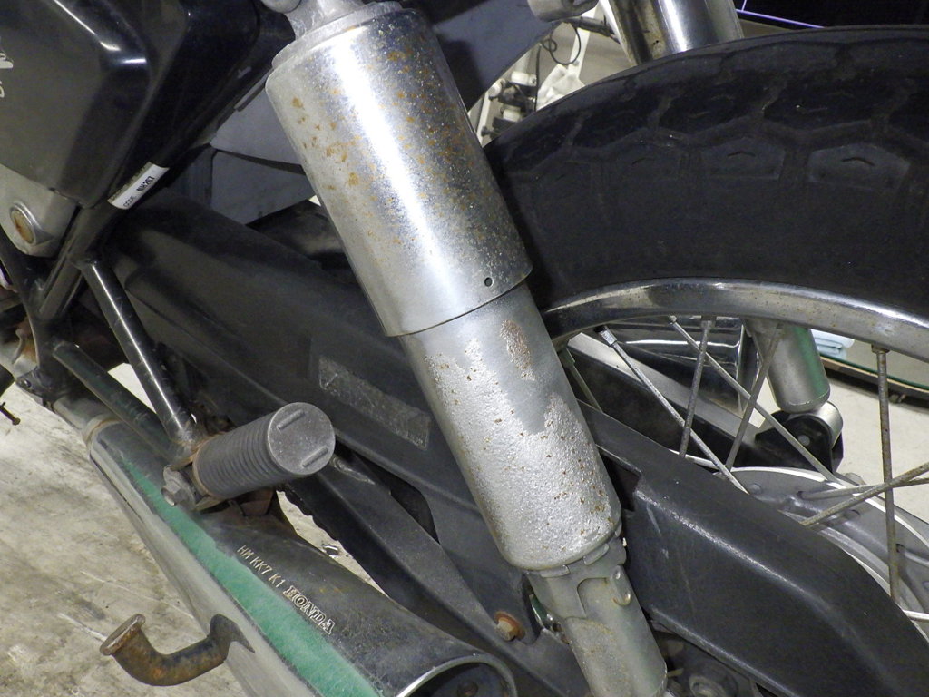 | внешняя часть вилки | следы коррозии <много>, полирован., потек масла, неисправен сальник |